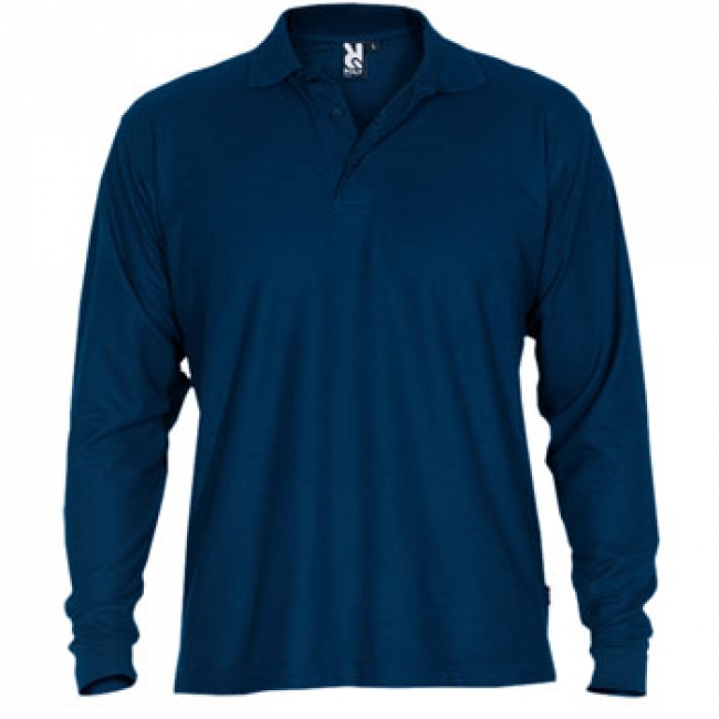 Tricou polo cu mânecă lungă, guler și manșete canelate 1x1 cu elastan și bandă întărită pentru acoperirea cusăturii la guler. Fantă cu 3 nasturi pentru adulți și cu 2 nasturi pentru copii. Șlițuri laterale.
