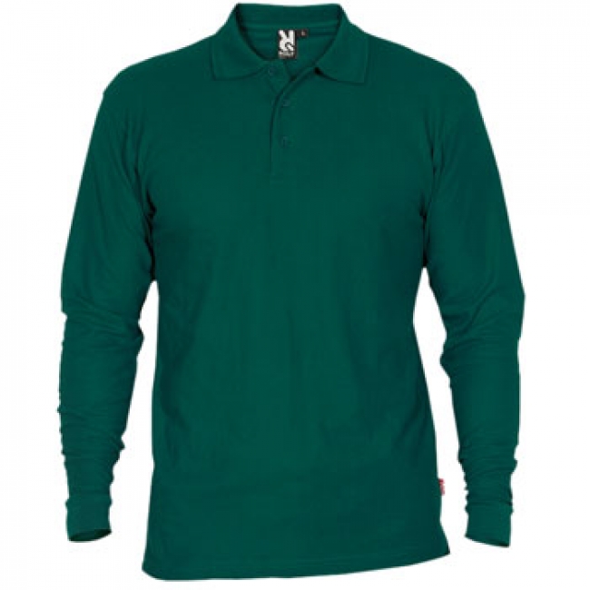 Tricou polo cu mânecă lungă, guler și manșete canelate 1x1 cu elastan și bandă întărită pentru acoperirea cusăturii la guler. Fantă cu 3 nasturi pentru adulți și cu 2 nasturi pentru copii. Șlițuri laterale.