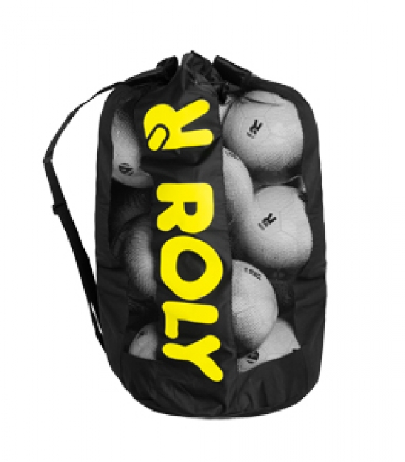 / Colectia textile Roly / Pentru sport / Geantă din plasă pentru mingii. Capacitate pentru 12-15 unități. Imprimeu Roly pe două părți laterale și o parte uni pentru publicitate. Toartă reglabilă, sistem închidere cu șnur și opritori.