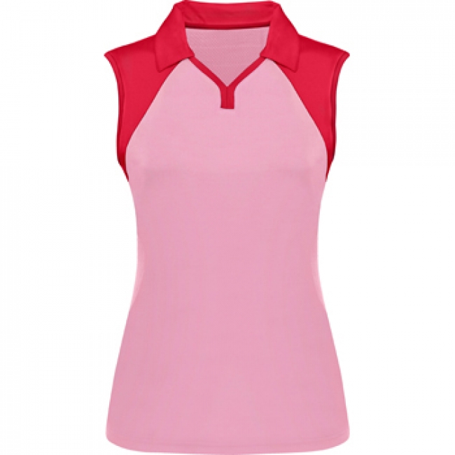 Acasa / Colectia textile Roly / Pentru sport / Tricou polo tehnic din material combinat fără mâneci. Material Interlock combinat cu plasă pe lateral și spate. Margini pe răscroiala mânecii și guler. Guler tip cămașă. Cu stil modern și plăcut la atingere.