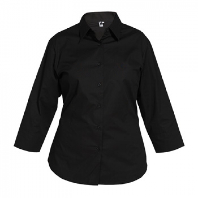Acasa / Colectia textile Roly / Imbracaminte pentru lucru / Cămașă cu mânecă 3/4 din material stretch, croială cambrată cu pliuri în față și în spate. Mânecă cu șliț. Tiv asimetric. Ușor de întreținut.