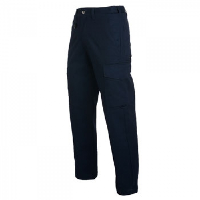 Pantaloni drepți fără pliuri. Două buzunare în spate și un buzunar lateral cu fermoar pe partea dreaptă. Două buzunare laterale: cel din stânga cu clapă și un buzunar pentru mobil, iar cel din dreapta cu mai multe compartimente. Betelie: suport pentru chei. Buzunare interioare pentru protecția genunchilor. Găici la buzunarele din spate și laterale.
