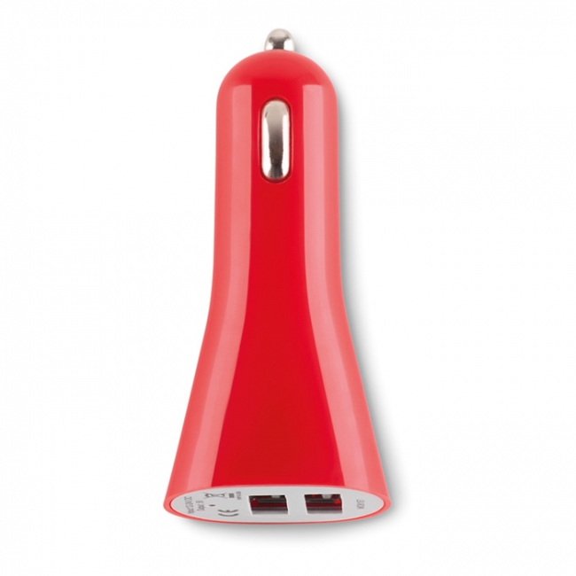 Încărcător auto USB din plastic ABS, compatibil cu smartphone, iPhone® și iPad®, cu indicator albastru de lumină.