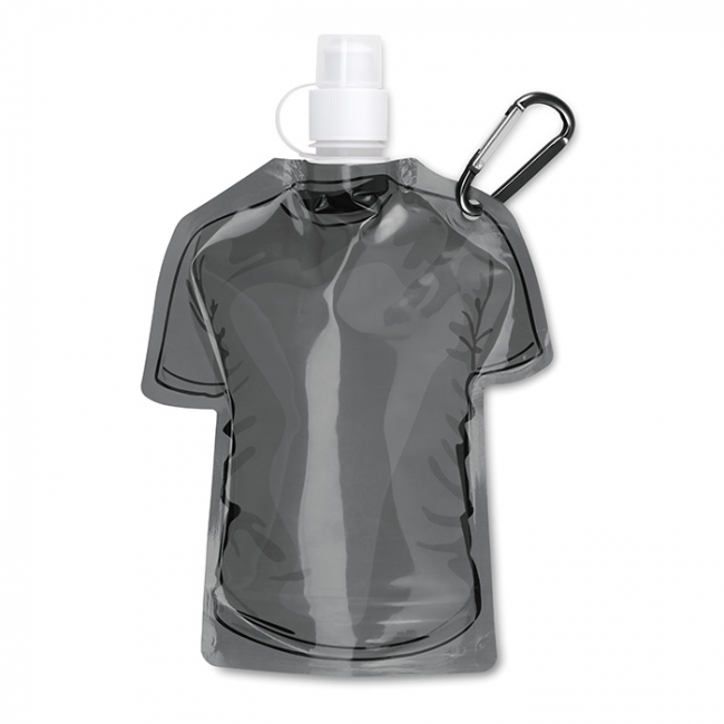 Recipient pliabil pentru apă, în formă de tricou, cu carabină. Capacitate 480 ml.