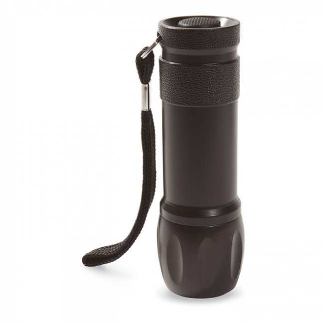 Lanternă din plastic ABS cu 9 LEDuri albe și șnur de mână. Nu include 3 baterii de tip AAA.