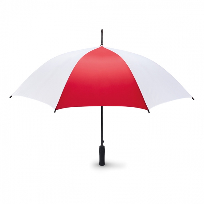 Umbrelă cu deschidere automată, 23 inchi, poliester 190T, ax și spițe metalice negre. Terminații negre din plastic. Mâner drept negru din material moale EVA. Închidere manuală.