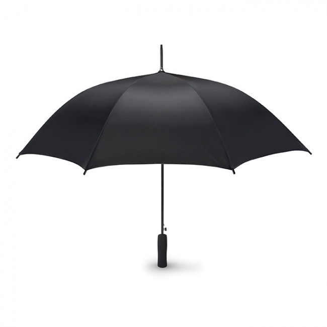 Umbrelă automată, 23 inchi, poliester 190T, ax și spițe negre metalice. Terminații negre din plastic. Mâner drept negru din material moale EVA. Închidere manuală.