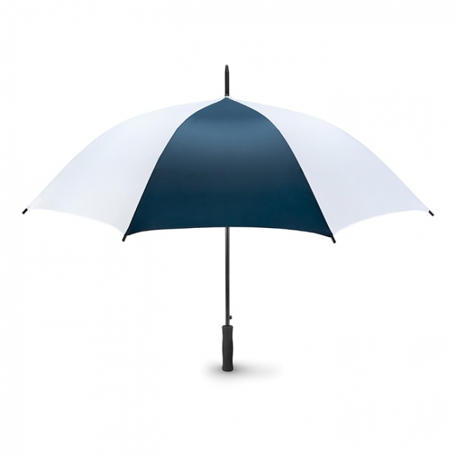 Umbrelă cu deschidere automată, 27 inchi, poliester 190T, ax și spițe metalice negre, terminații negre din plastic. Mâner drept negru din material moale EVA. Închidere manuală.