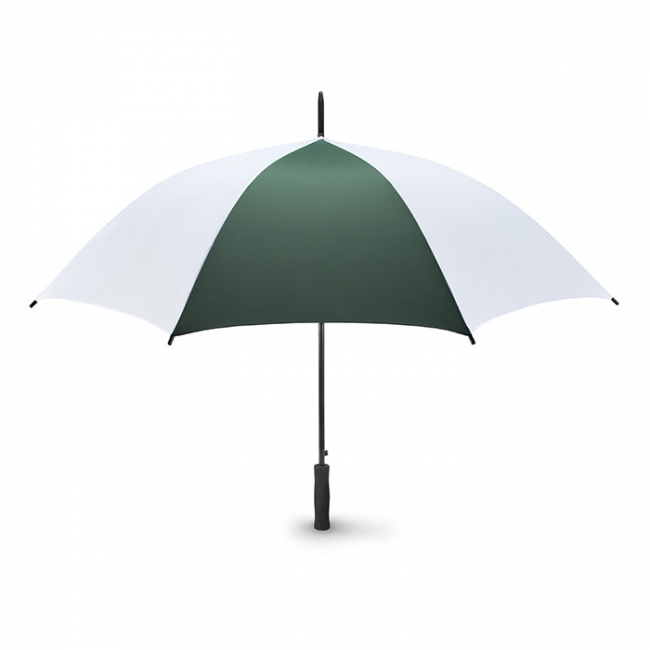 Umbrelă cu deschidere automată, 27 inchi, poliester 190T, ax și spițe metalice negre, terminații negre din plastic. Mâner drept negru din material moale EVA. Închidere manuală.