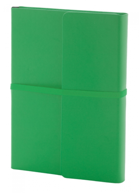 Blocnotes cu copertă din înlocuitor piele, 96 file, cu semn de carte și bandă elastică.