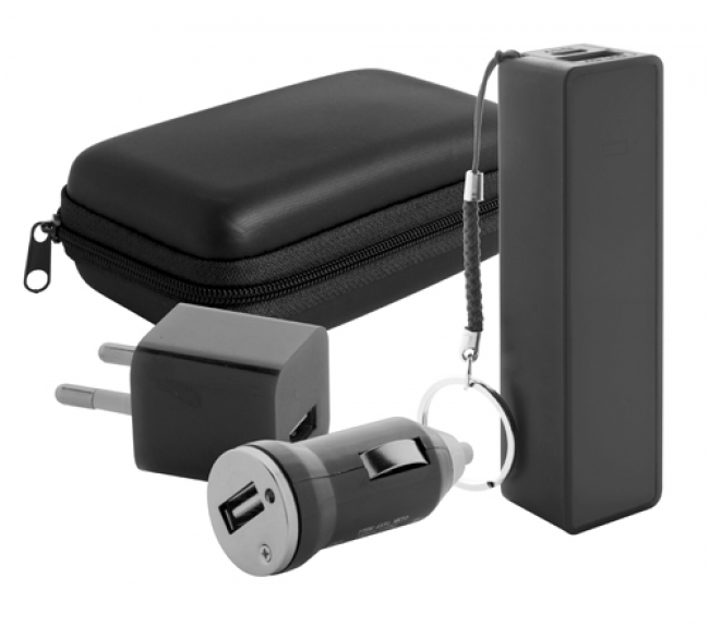 Setul conține încărcător USB auto și AC (max: 1000 mA) și o baterie externă 2200 mAh. În suport cu fermoar.