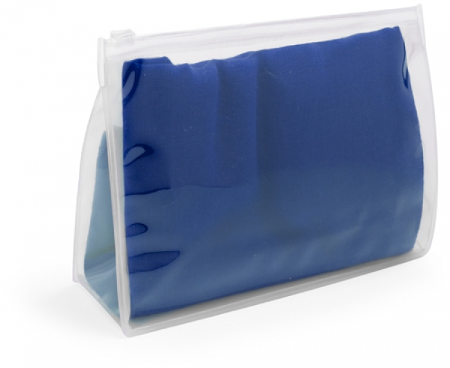 Eșarfă colorată pentru plajă, în suport transparent din plastic. Material: vâscoză/poliester.