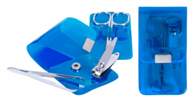 Set manichiură cu 3 accesorii, în husă transparentă din plastic.