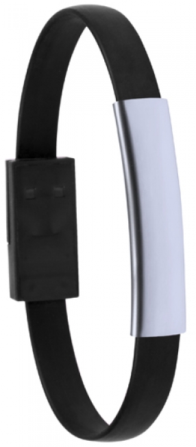 Rubber bracelet with micro USB charger cable and aluminium plate.