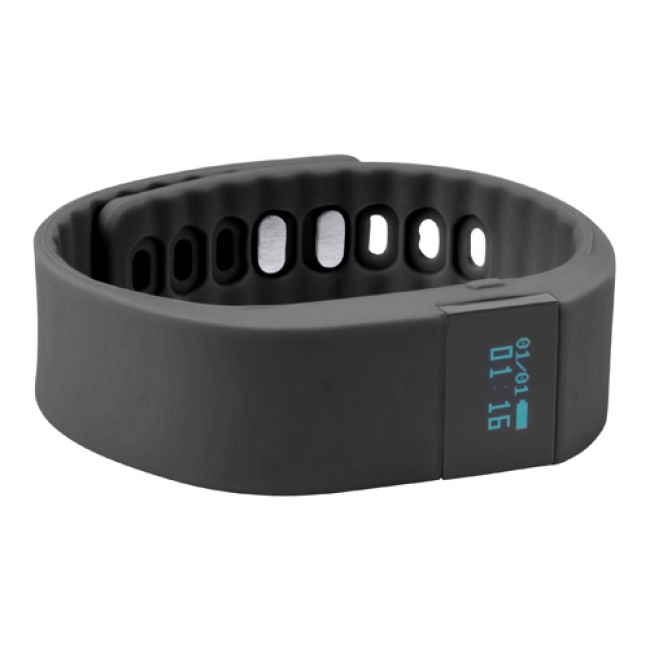 Multilingual, bluetooth smart watch with silicon strap and 0,61" LCD screen. Including USB charger cable.