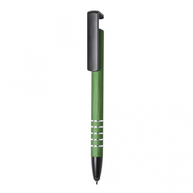 Aluminium ballpoint and touch screen pen with mobile holder clip. With blue refill. Design Spaik