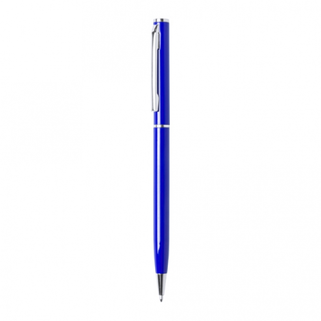 Metal ballpoint pen with blue refill.