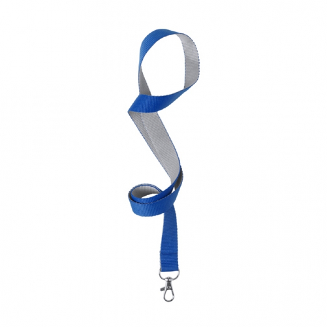 Bicolour polyester lanyard with metal carabiner.