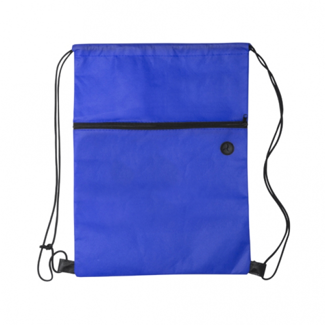 Drawstring bag with zipped pocket and earphone outlet, non-woven.