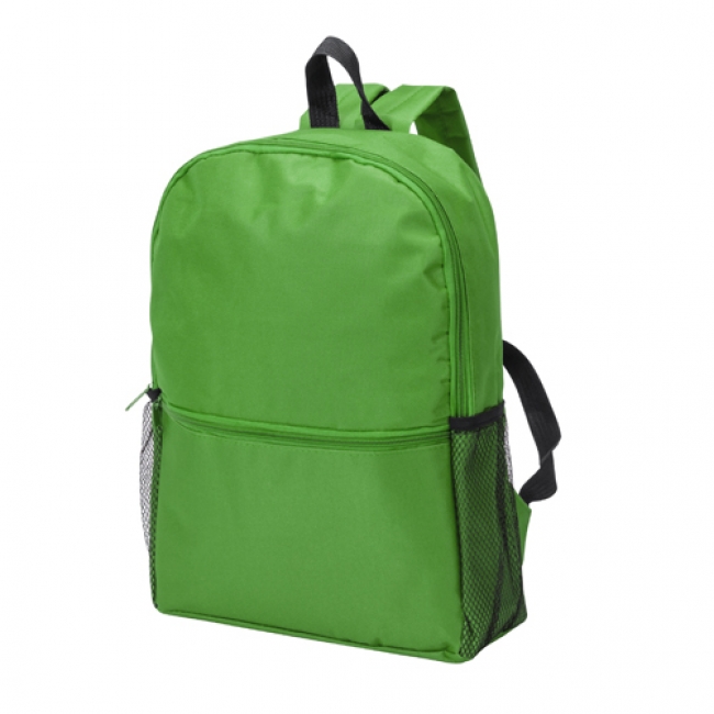 Backpack with zipped compartments, adjustable shoulder strap and meshed side pockets. 600D polyester. Design Yobren
