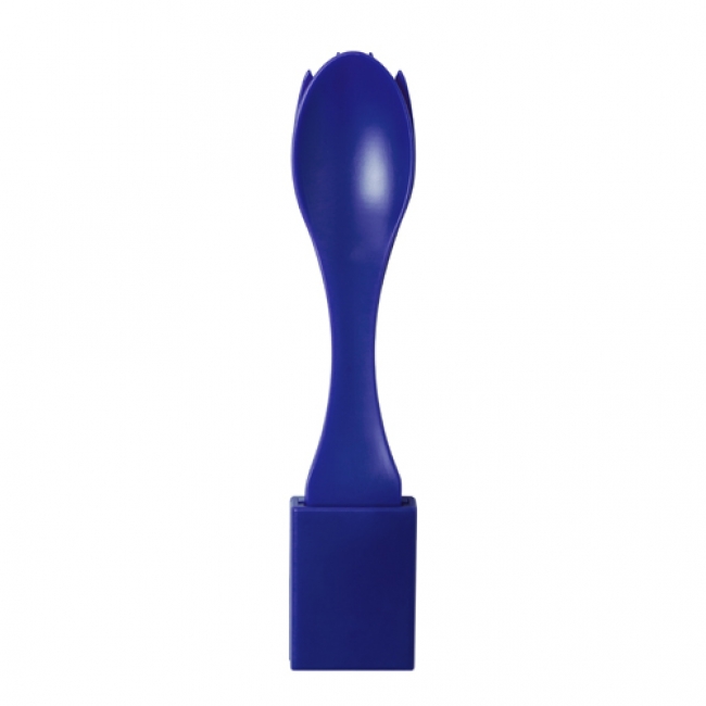 Plastic cutlery set with knife, fork, spoon and bottle opener function.