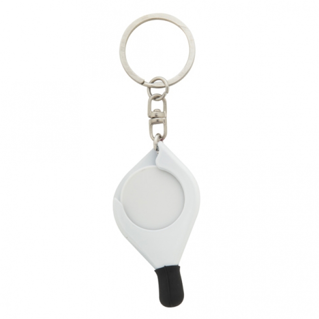 Plastic keyring with shopping trolley coin and touch screen pen.