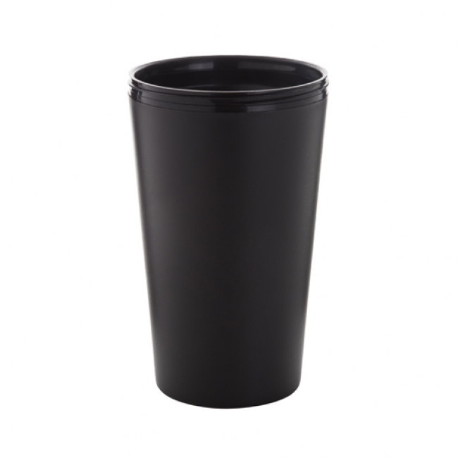 Customisable, double wall plastic thermo mug with silicone grip and drinking lid. 400 ml. MOQ: 50 pcs.