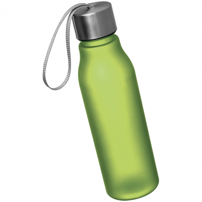 Sticlă colorată pentru sport (550ml), fabricat din plastic cu finisaj cauciucat, cu capac metalic cu agățător. Personalizarea vă recomandăm prin tampografie.