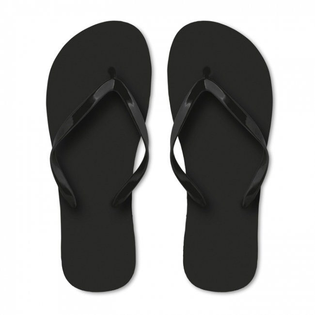Șlapi cu talpă din polietilenă pentru plajă, cu curele din PVC. 2 mărimi disponibili, M pentru mărimi 36-39 și L pentru 40-43. Tehnica de imprimare posibilă este: gravură L(1).