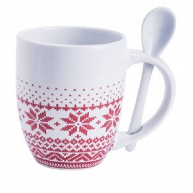 Cană ceramică albă cu linguriță, cu design de Crăciun, 400 ml. In cutie de carton. Design : Sorbux