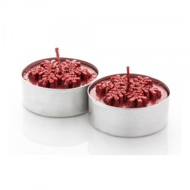 Contine: 2 lumanari ,în formă de fulg de nea in cutie transparentă de plastic. Design : Duo