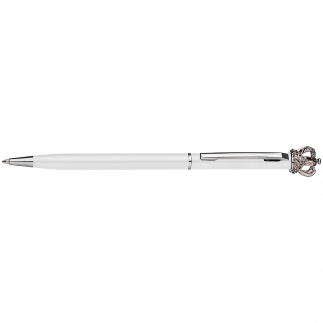 Fă-ți clientul un rege cu acest pix regal: cu coroană și un cristal Swarowski adevărat pe capăt. Personalizarea vă recomandăm prin gravură laser.