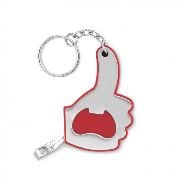 Breloc cu desfăcător dopuri și ruletă de 1m, în forma degetului mare.