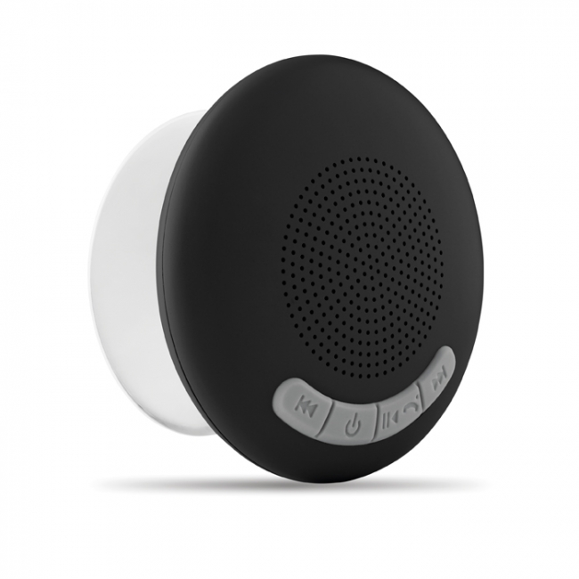 Boxă de duș cu bluetooth 4.2 și ventuză pe verso. Include baterie reîncărcabilă Li-Ion de 300 mAh. Date de ieșire: 3W, 4 Ohm.