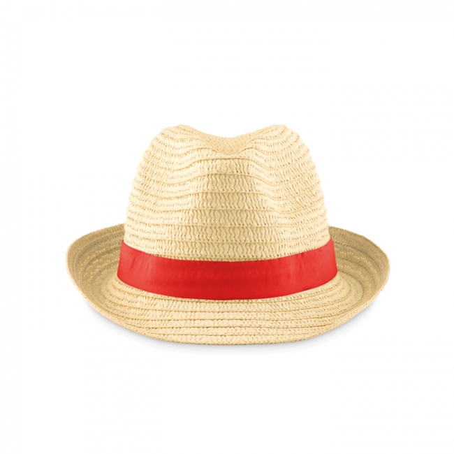 Pălărie din paie naturale, cu bandă colorată din bumbac sau poliester.