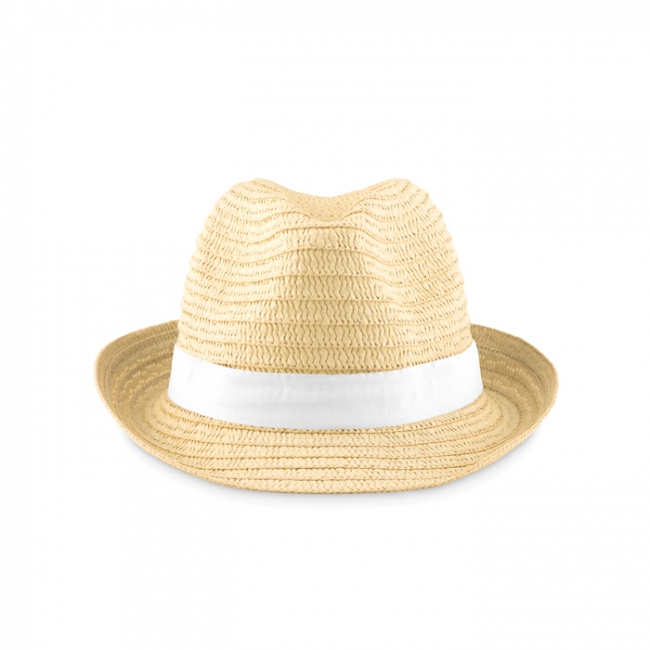 Pălărie din paie naturale, cu bandă colorată din bumbac sau poliester.