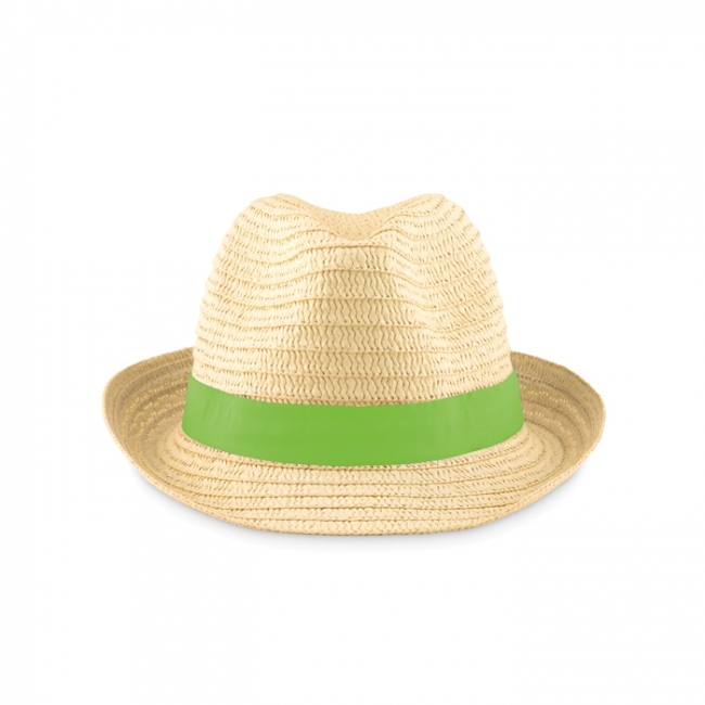 Pălărie din paie naturale, cu bandă colorată din bumbac sau poliester.
