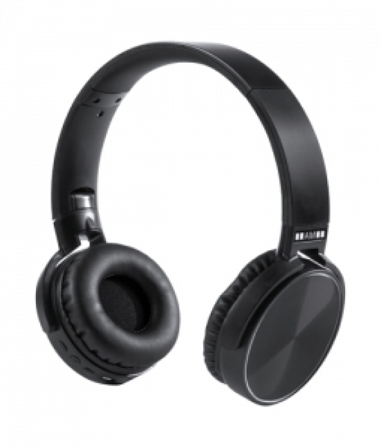 Plastic bluetooth headphones with 3,5 mm audio Jack connection and built-in rechargeable battery. With FM radio and hands-free call function. Including USB charger cable. Antonio Miro brand product.