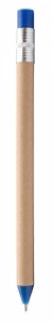 Recycled paper, pencil shaped ballpoint pen with coloured plastic tip and button. With blue refill.