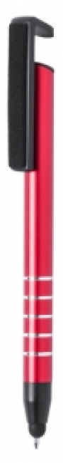 Aluminium ballpoint and touch screen pen with mobile holder clip and screen cleaner. With blue refill.
