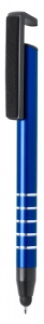 Aluminium ballpoint and touch screen pen with mobile holder clip and screen cleaner. With blue refill.