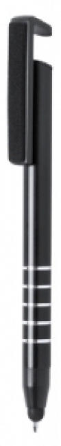 Aluminium ballpoint and touch screen pen with mobile holder clip and screen cleaner. With blue refill.