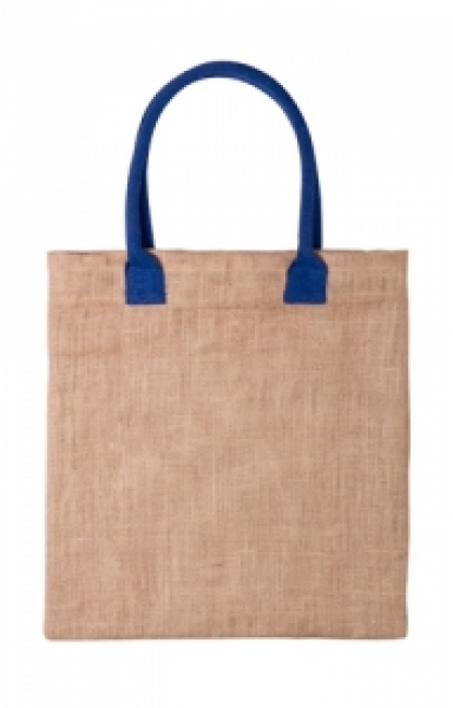 Jute shopping bag with coloured handles.