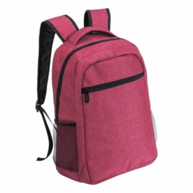 Backpack with zipped compartments, padded back, shoulder straps and laptop compartment. 600D polyester.