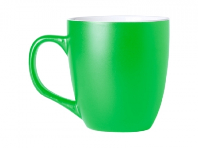 Ceramic mug with white inside and colour outside, 400 ml. In white paper box.