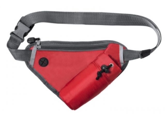 Reflective waistbag with padded back and pocket for sport bottle. 210D polyester.