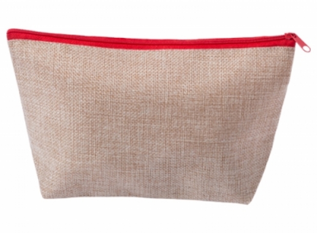 Jute imitation, polyester cosmetic bag with coloured zip.