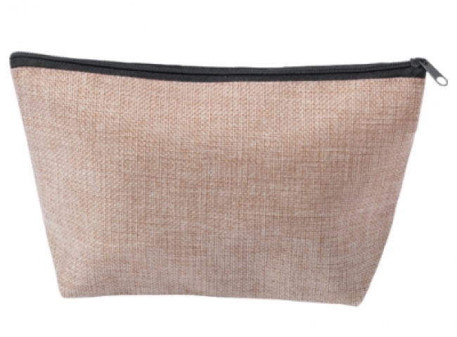 Jute imitation, polyester cosmetic bag with coloured zip.