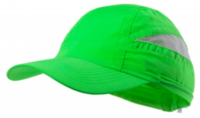 Microfiber baseball cap with grey mesh and adjustable rubber strap.