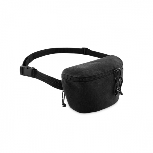 Borsetă din poliester în două nuanțe de culoare, 600D cu compartimente frontale și spate cu fermoar, cu curea reglabilă pentru talie.